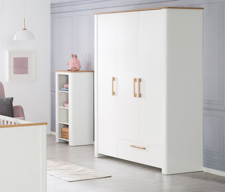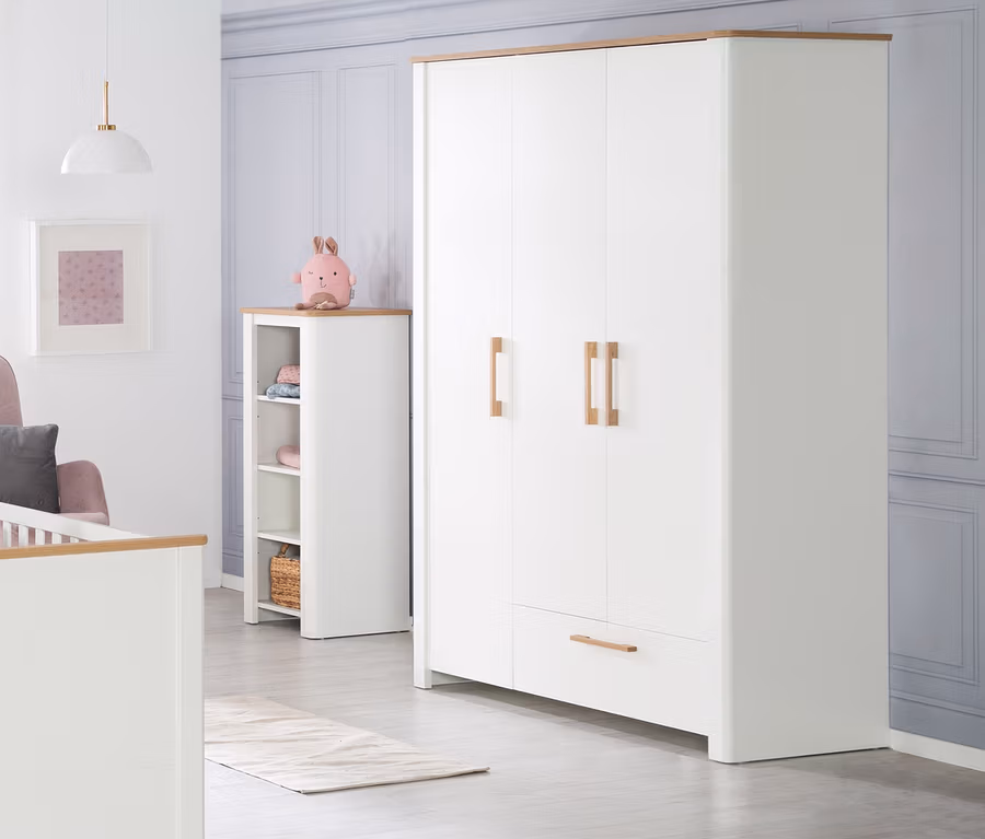 - Fächer, Schubladen und Kleiderstange sorgen für Ordnung