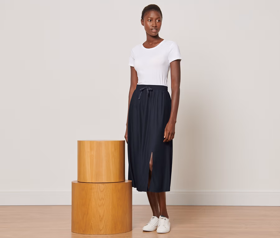 • Dieser Rock beinhaltet Fasern aus nachhaltigem Holz.