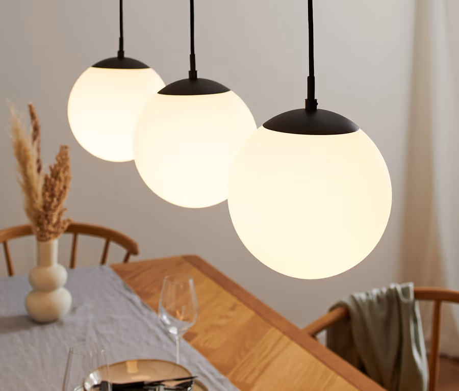 Hängeleuchte mit Glaskugeln, 3-flammig, eckig