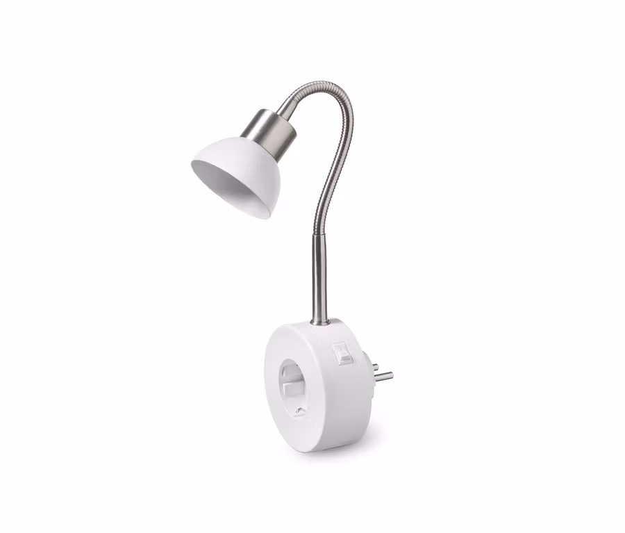 - LED-Schwenkleuchte mit integrierter Steckdose und flexiblem Leuchtenarm