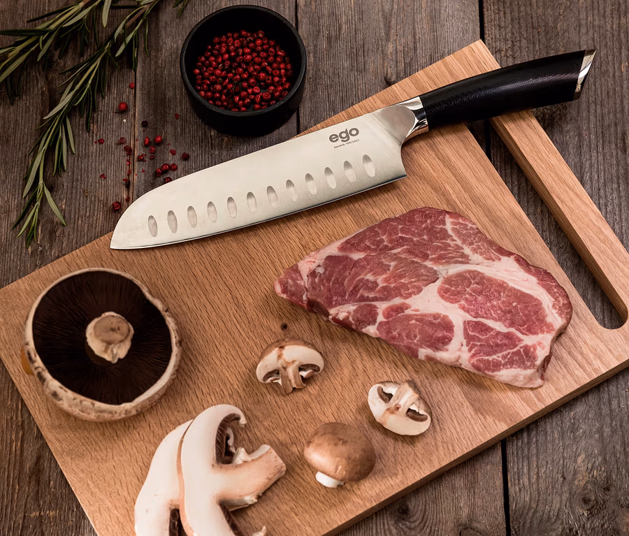 - Kleine Vertiefungen in der Klinge – Gemüse und andere Lebensmittel bleiben nicht am Messer kleben