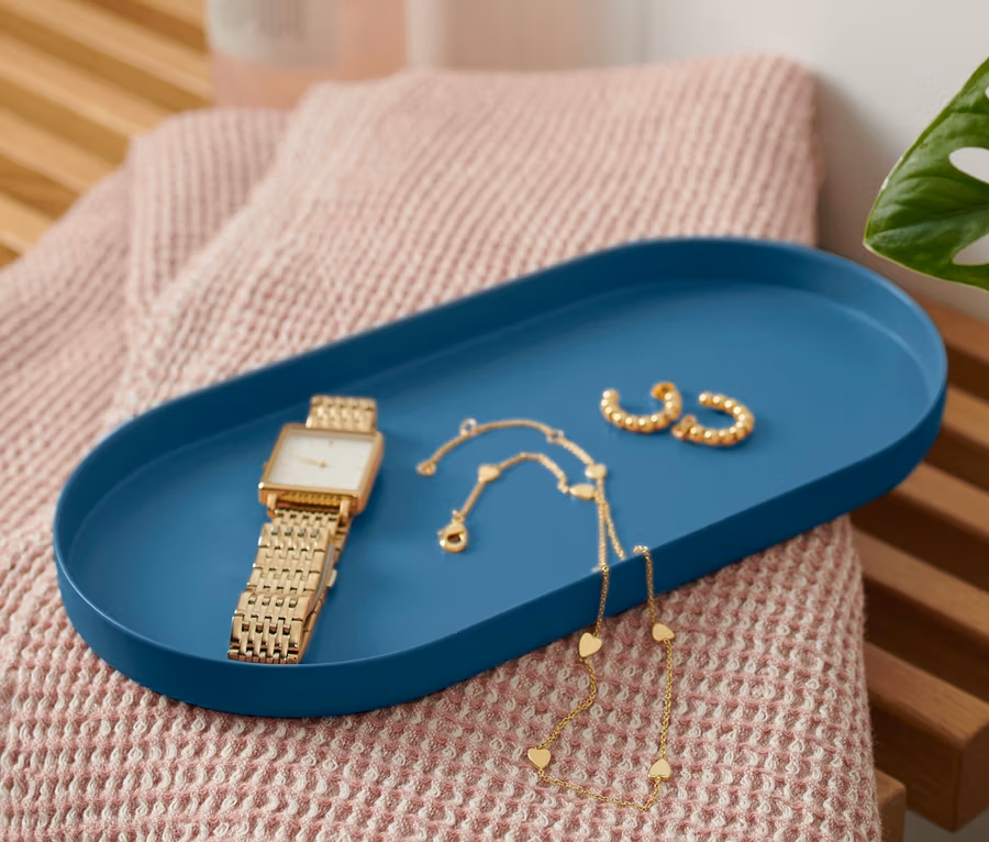 Tablett aus Metall, blau