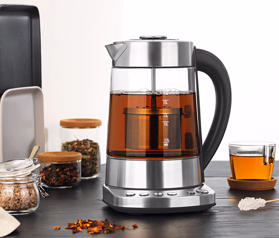 Tee- und Wasserkocher mit 1,7-l-Glaskanne und Teesieb
