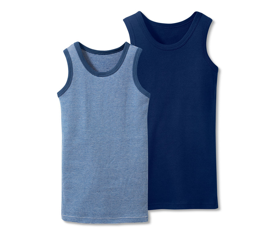 Ärmellose Unterhemden zählen zu den absoluten Unterwäscheklassikern – völlig zu Recht! Und auch bei den Kleinen stehen die bequemen Hemdchen hoch im Kurs. Diese beiden Unterhemden sind in weicher, formbeständiger Feinripp-Qualität aus reiner, hautsympathischer Baumwolle gefertigt und sitzen angenehm am Körper. Sie haben einen elastischen Halsausschnitt und sind im schmalen, geraden Schnitt gehalten.