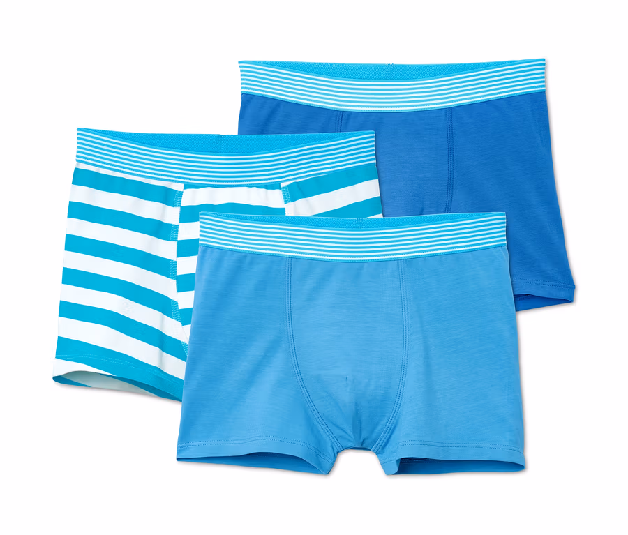 Diese drei Jungen-Slipboxer machen mit ihren frischen Blautönen schon beim Anziehen gute Laune. Mit ihrer weichen Single-Jersey-Qualität und dem hohen Anteil an nachhaltig angebauter Bio-Baumwolle liegen Sie wunderbar weich auf der Haut und das weiche, elastische Bündchen sorgt für einen sicheren sowie bequemen Sitz. Die Unterhosen sind im vorderen Bereich doppellagig gearbeitet, Elasthan hält sie in Form und erhöht nochmal den Tragekomfort. Die Slips sind ohne störende Seitennähte gefertigt – so scheuert garantiert nichts, auch bei aktiven Kids.