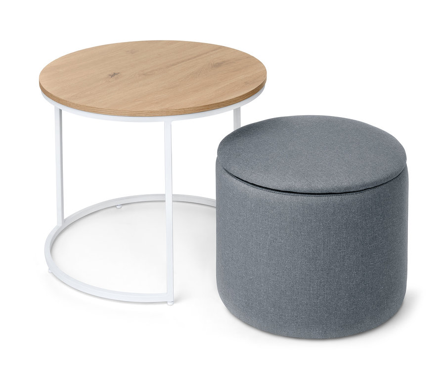 - Pouf lässt sich unterhalb des Beistelltisches verstauen