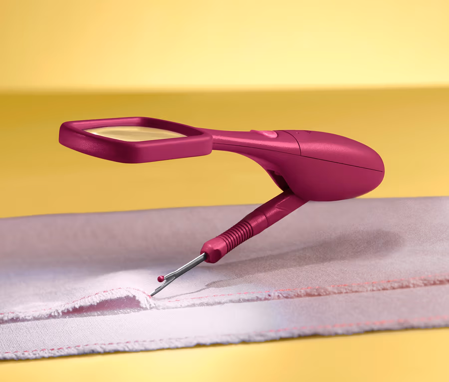 Ein Nahttrenner für alle Fälle: Dank Lupe, LED-Licht und um 360° drehbarer Trennklinge lassen sich mit diesem Handarbeitshelfer auch feinste Nähte präzise fokussieren und trennen. Die Trennklinge wird dabei direkt beleuchtet und kann besonders genau zur Naht positioniert werden. Die Lupe hat eine 2-fache Vergrößerung und bei Nichtgebrauch sorgt der Klingenschutz für Sicherheit.