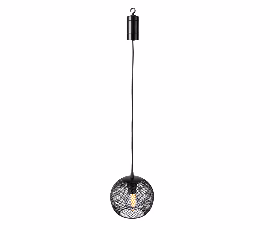 Mit der hier muss noch lange nicht Schluss sein, wenn die Sonne untergegangen ist: Diese LED-Outdoor-Pendelleuchte verbreitet angenehmes Licht und sorgt im Garten oder auf dem Balkon für eine einladende Stimmung. Die Leuchte mit einem Lampenschirm in Gitteroptik verleiht mit ihrem integrierten Filamentleuchtmittel-Imitat jedem Außenbereich einen stimmungsvollen Akzent.
