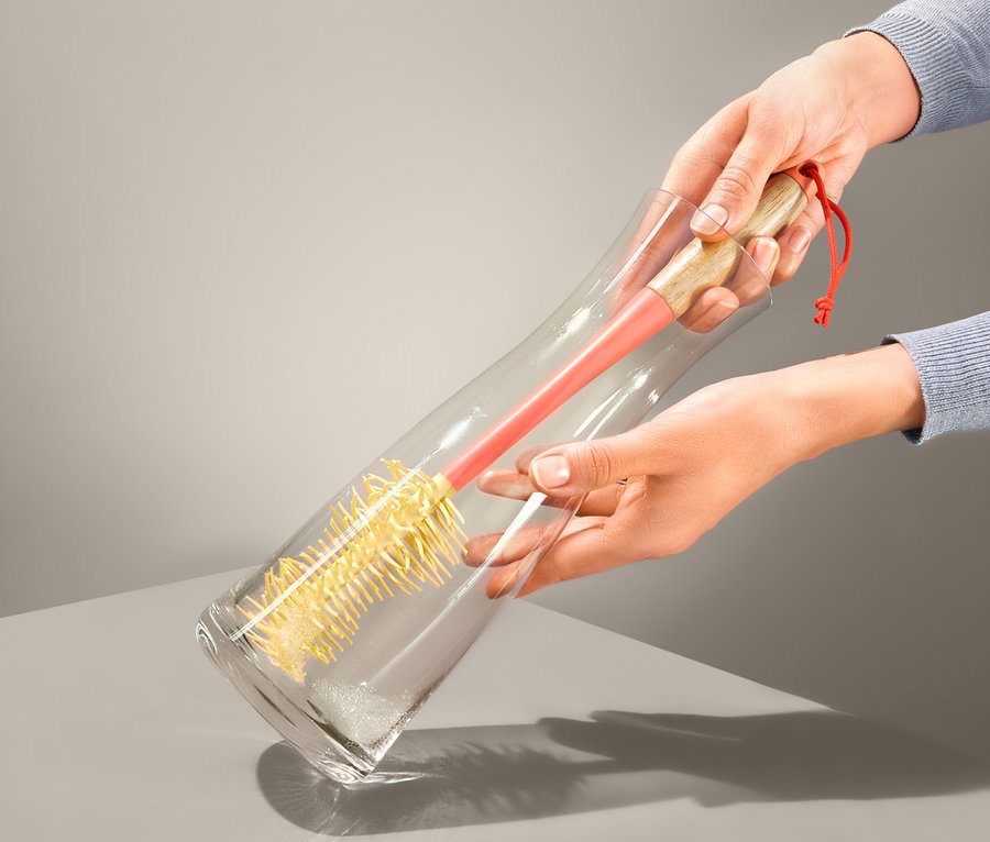 - Flexibler Bürstenkopf – passt sich optimal an unterschiedliche Flaschen- und Gläserformen an