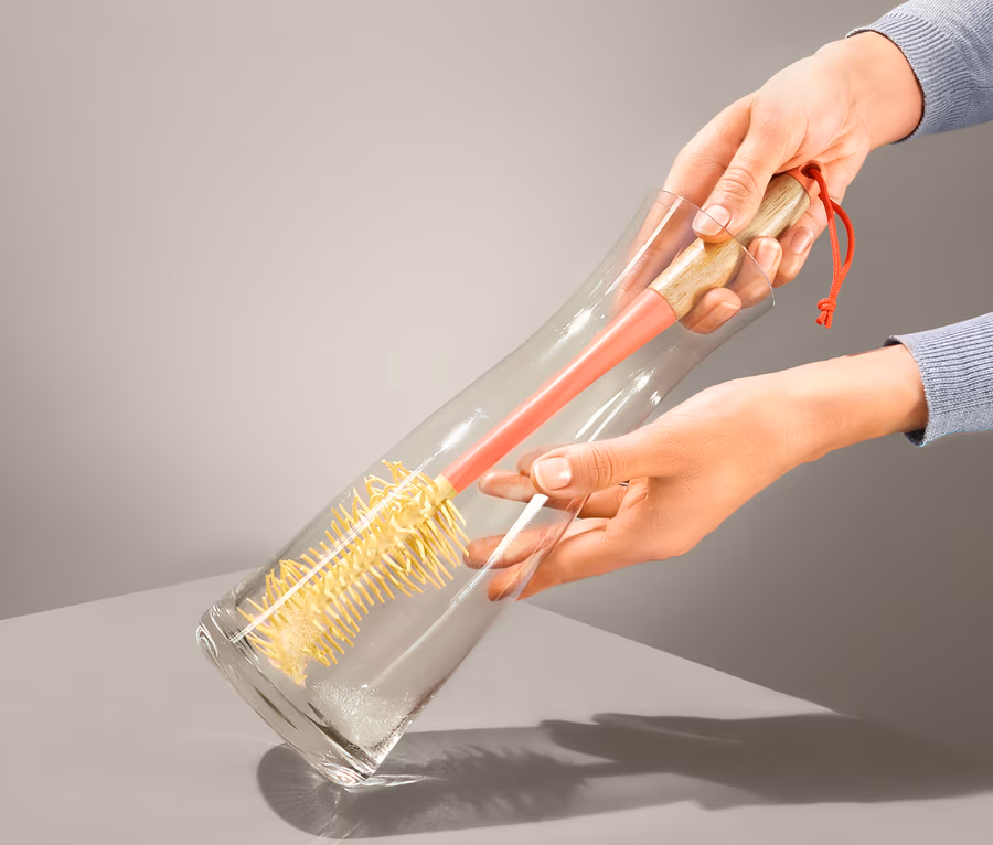 - Flexibler Bürstenkopf – passt sich optimal an unterschiedliche Flaschen- und Gläserformen an