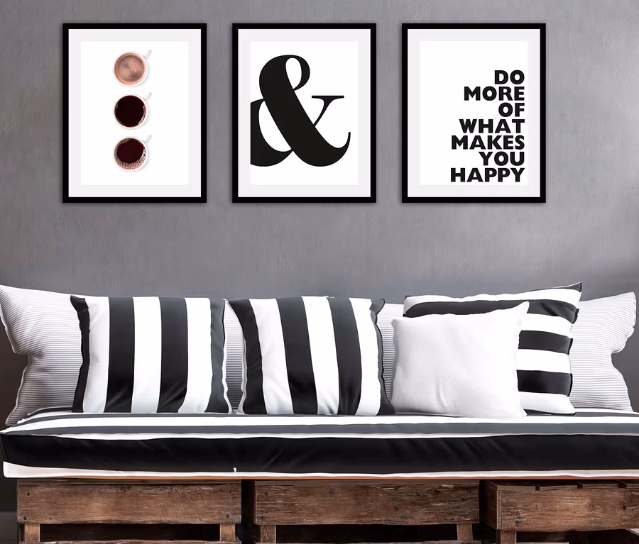 - Schlichte, elegante Holzrahmen – betonen die Motive
