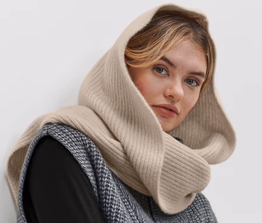 - 2 in 1: Locker sitzende Kapuze und Schal in einem