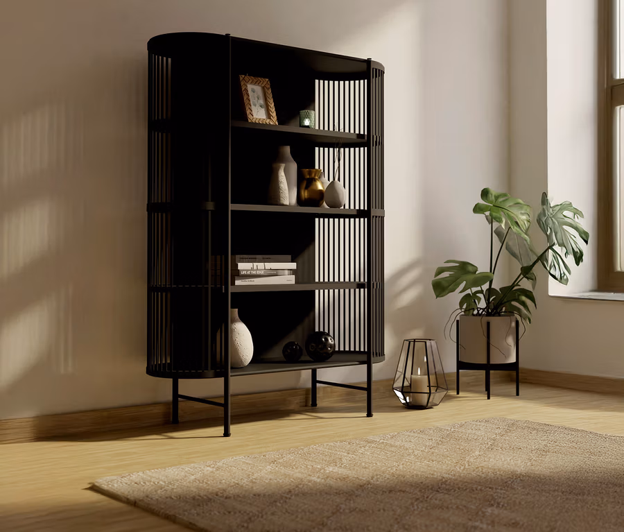 - Seitenteile mit offenem Gitter für einen skandinavisch leichten, künstlerischen Look
