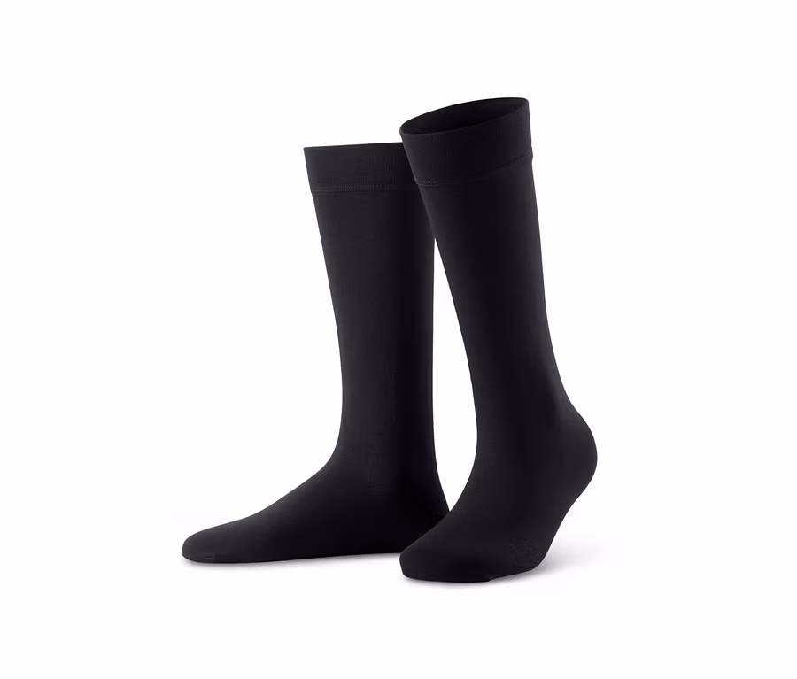 Diese klassischen Kniestrümpfe in mattem Schwarz sind mit ihrer Thermofunktion und der angerauten Innenseite besonders wärmend an kalten Tagen. Das formbeständige Material aus Elasthan und die extraflache Zehennaht sorgen für hohen Tragekomfort und einen perfekten Sitz. Die weichen Damenstrümpfe sind komplett blickdicht und liegen jederzeit angenehm auf der Haut.
