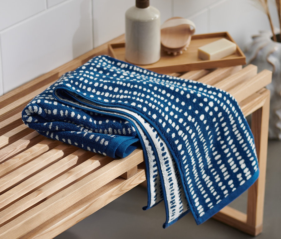 - 1 Seite dunkelblau mit weißen Tupfen, 1 Seite weiß mit dunkelblauen Tupfen