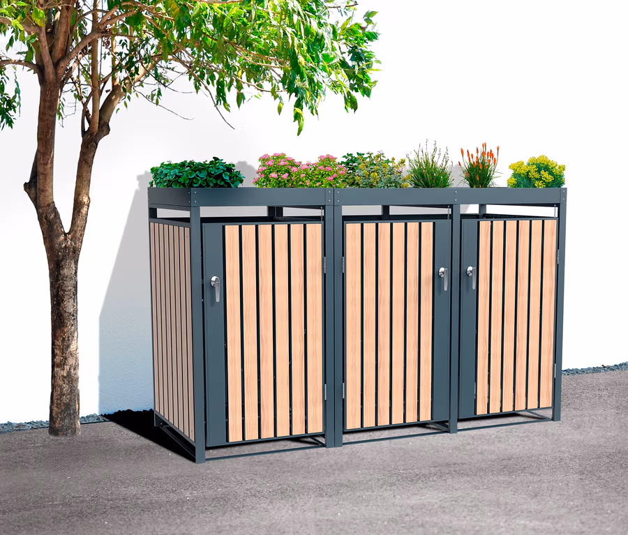 Mülltonnenbox mit Blumenkasten, 3er