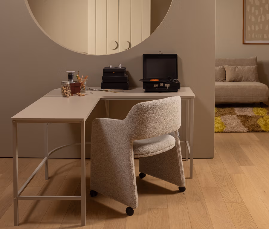 - Moderner, bequemer Esszimmerstuhl auf Rollen mit festem Sitz