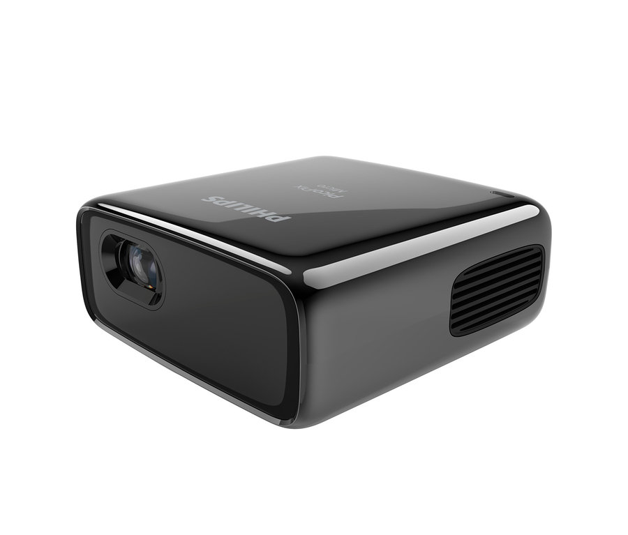 Dieser besonders kompakte Beamer von Philips macht mit einer Bilddiagonalen von bis zu 255 Zentimetern jede Wand zur großen Leinwand. Die Inhalte werden mit 150 Color-Lumens auf Wand oder Leinwand projiziert und der Sound kommt über den integrierten Lautsprecher oder über den Kopfhörer. Mit vollgeladenem Akku beträgt die Betriebszeit des Projektors etwa 115 Minuten.