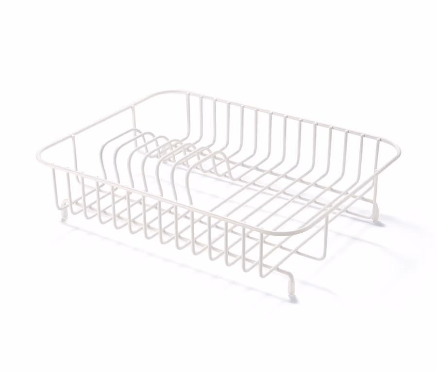 Ideal für kleine, gemütliche Küchen: Mit diesem kompakten, platzsparenden Abtropfgestell bleibt auch in überschaubaren Küchennischen Platz zum Kochen und Backen. Im Gestell aus pulverbeschichtetem Metall kann das nasse Geschirr sicher zum Abtrocknen aufgestellt werden. Rutschhemmende Silikonfüße sorgen für einen sicheren Stand und schonen die Oberfläche.