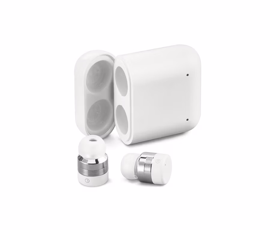 Können sich sehen lassen, diese kabellosen In-Ear-Kopfhörer – da ist es fast ein bisschen schade, dass die kleinen Dinger so gut wie unsichtbar sind. Die True-Wireless-Stereo-Kopfhörer arbeiten mit Bluetooth®-4.2-Technologie und lassen sich schnell und stabil mit Smartphone oder Tablet verbinden – in jedem Fall liefern sie einen herausragenden Sound mit klaren Höhen und satten Bässen.