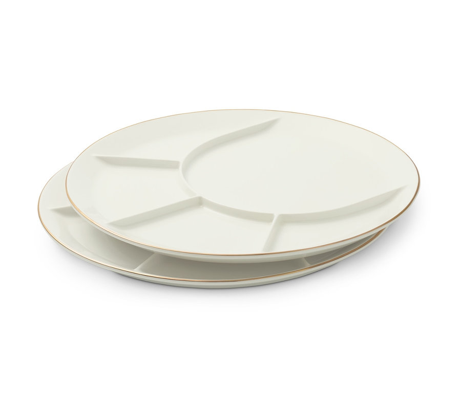 2 Fondue- und Servierteller mit Glanzgolddekorrand