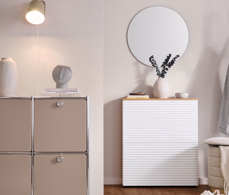 - 2 Kippfächer mit Schuheinsatz und Push-to-open-Mechanismus