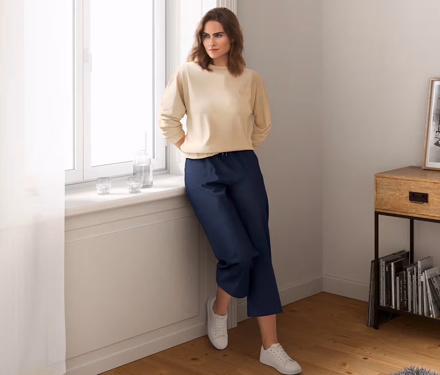 - Elastischer Bund mit Tunnelzug und Bindeband