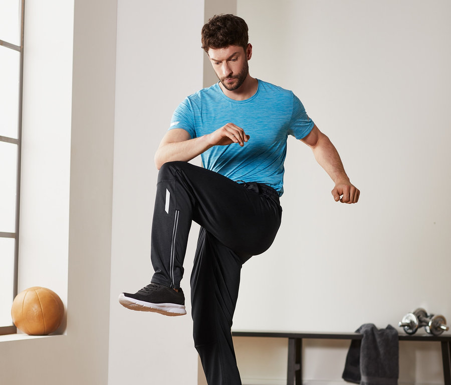 - Herren-Sporthose mit 2 Eingrifftaschen und Reißverschluss-Gesäßtasche