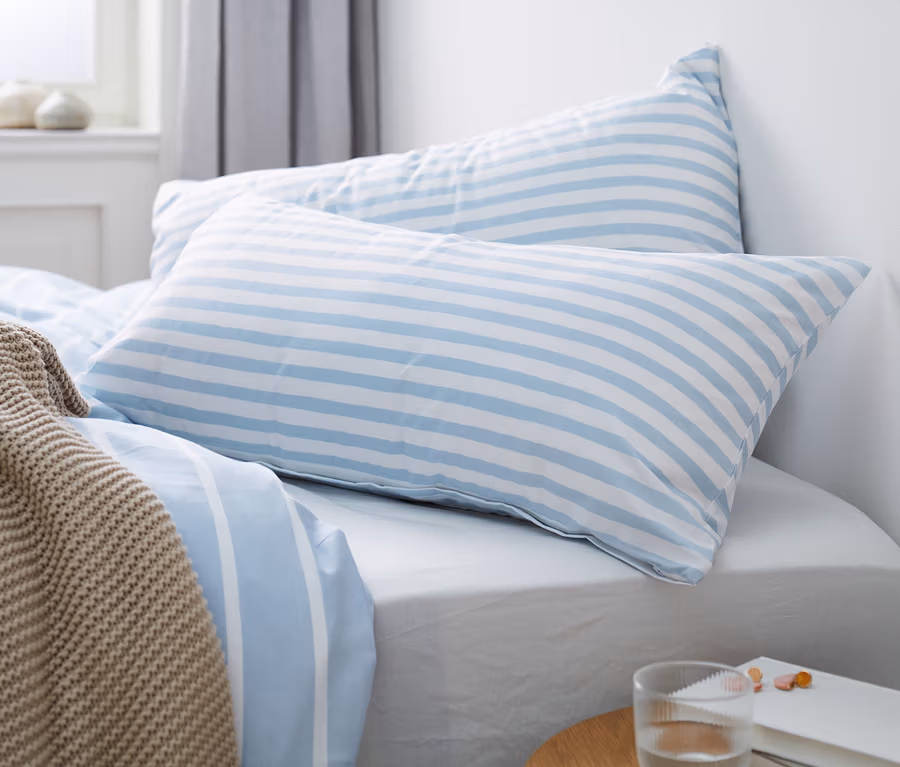 2 Renforcé-Kopfkissenbezüge, blau-weiß gestreift