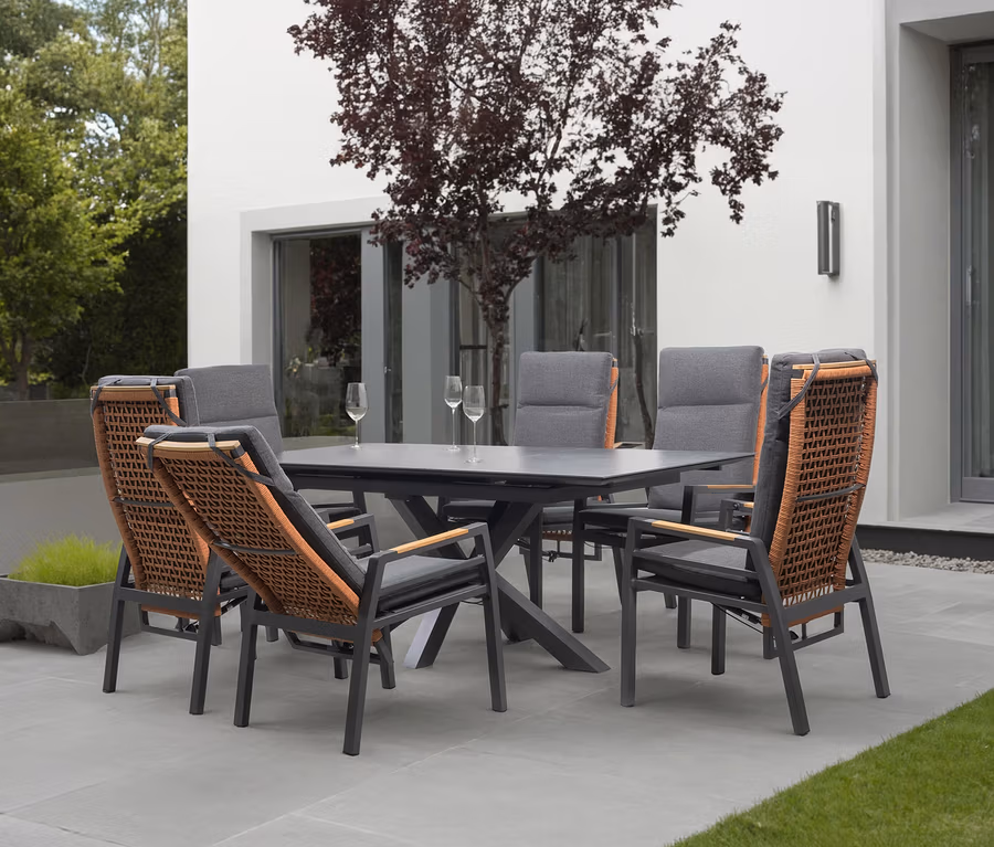 - Rückenlehne mit witterungsbeständigem, schnelltrocknendem Textilgeflecht