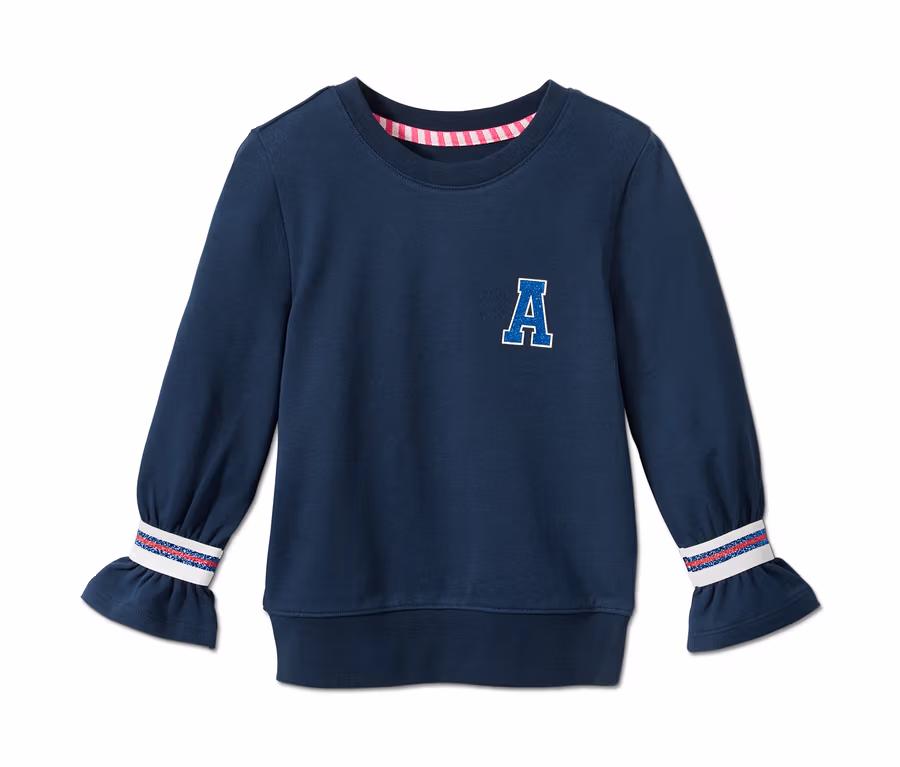 Dieses Sweatshirt im coolen College-Look mit Glitzerprint auf der Brust ist durch seinen hohen Anteil an Bio-Baumwolle besonders komfortabel. Das Shirt hat dekorative Tulpenärmel mit elastischem Band und Glitzerstreifen, am Saum ist es mit einem umlaufenden Rippbündchen versehen.