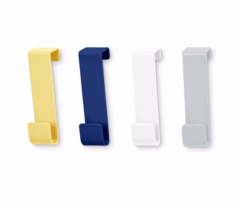 Einfach an der Türoberkante einhängen – schon finden Jacken, Pullis und Mützen auf den vier Haken Platz. Diese Türhaken aus pulverbeschichtetem Metall in vier Farben sind die wahrscheinlich unkomplizierteste Lösung für mehr Stauraum. Zur Montage ist kein Bohren oder Kleben nötig und im Handumdrehen kann jede Menge Kleidung aufgehängt werden. Zusätzlich verhindern acht selbstklebende Silikonpunkte, dass die Kleiderhaken klappern.