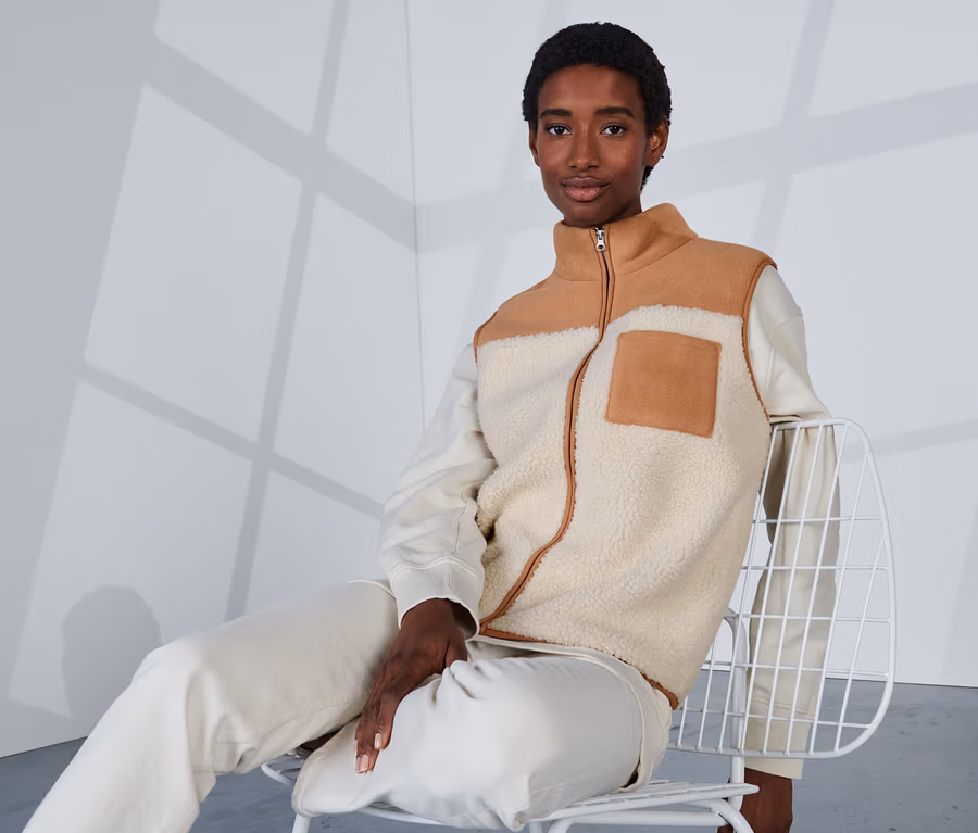 - Weste mit angesamtem Teddy-Fleece und Akzenten in farbigem Fleece