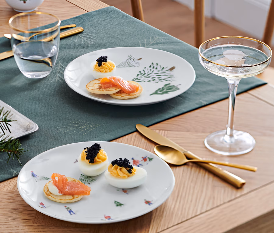 - 1x weiß mit Tannenbaum-Print, 1x weiß mit Spaziergänger-Print