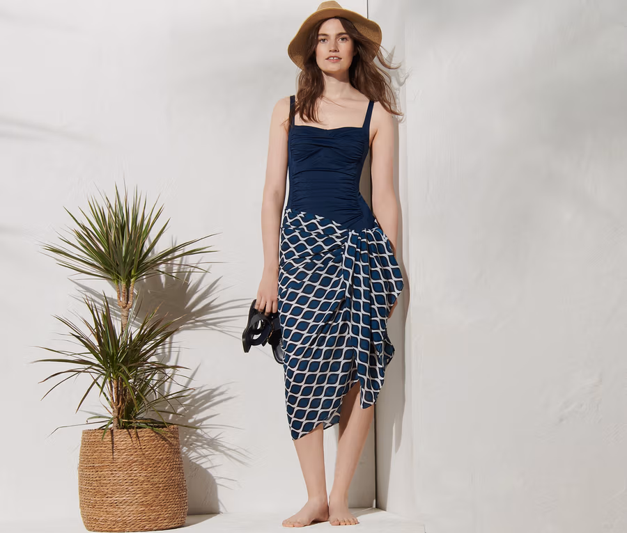 - Als Schal, Pareo oder Strandtuch tragbar