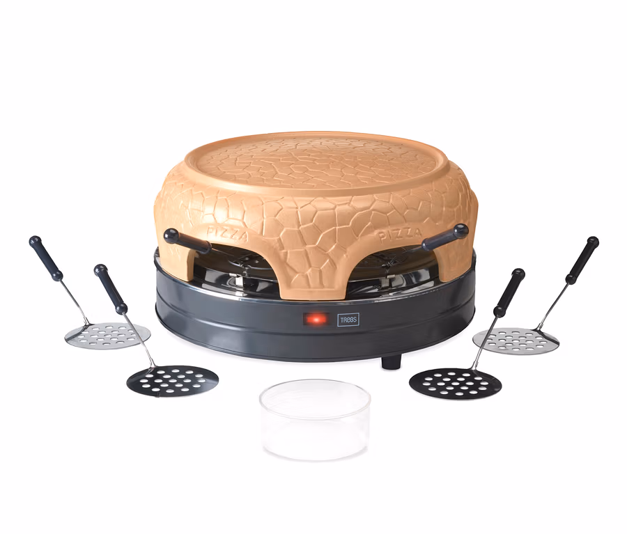Ein schöner Abend mit Freunden oder Familie wird gleich noch schöner, wenn man sich zum gemeinsamen Essen trifft. Und besonders ungezwungen und kommunikativ wird das bei einer Pizza. Genauer gesagt: bei sechs Pizzen. Mit diesem Pizza-Ofen können sich bis zu sechs Personen gleichzeitig ihre individuell belegten Mini-Pizzen backen. Durch die sechs Öffnungen in der Terrakotta-Kuppel funktioniert das wie beim Raclette oder Fondue.