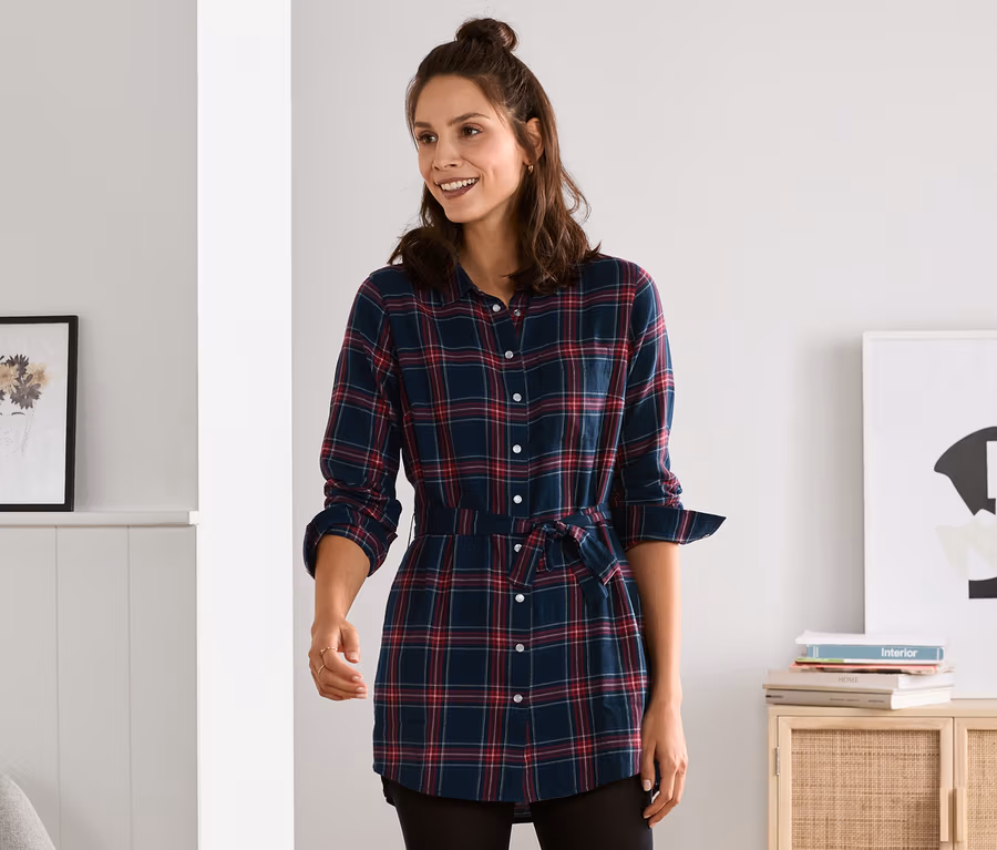 Karierte Longbluse aus Baumwoll-Flanell