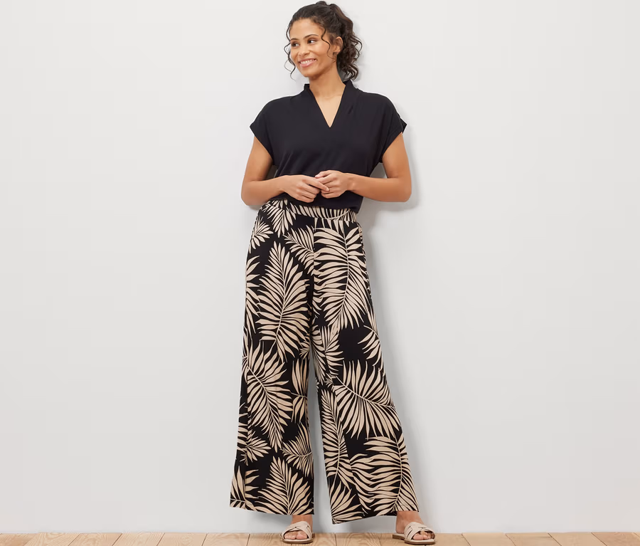 - Schwarz mit beigefarbenem Palmenblätter-Print