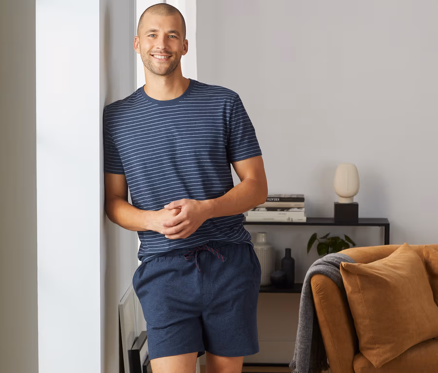 - Oberteil dunkelblau-meliert-hellblau-meliert gestreift