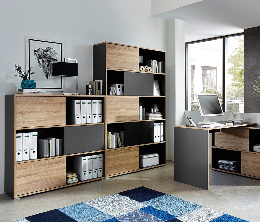 Kleines Schiebetürregal »Slide«, anthrazit/Eiche-Nachbildung