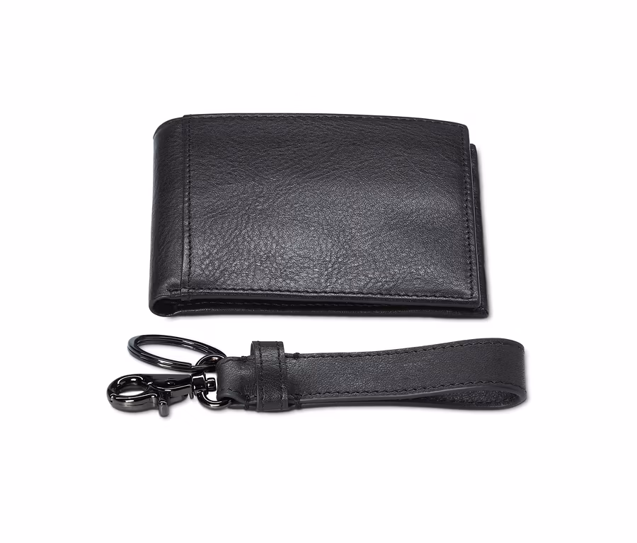 Geschenk-Set: Leder-Portemonnaie und Schlüsselanhänger