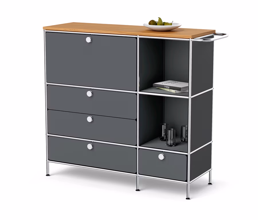 Sideboard Metall »CN3« mit Holzplatte, 1 Klappenfach und 4 Schubladen, grau