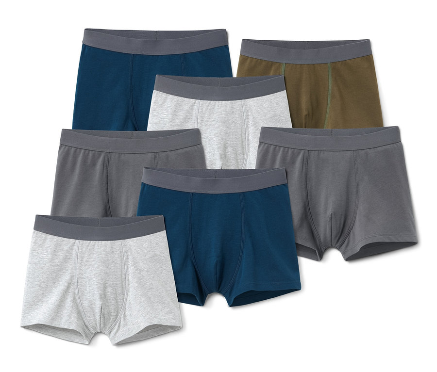 - 2x blau, 2x grau, 2x grau-melange, 1x olivgrün