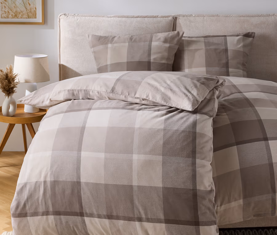 Flanell-Bettwäsche, grau-beige kariert, Übergröße