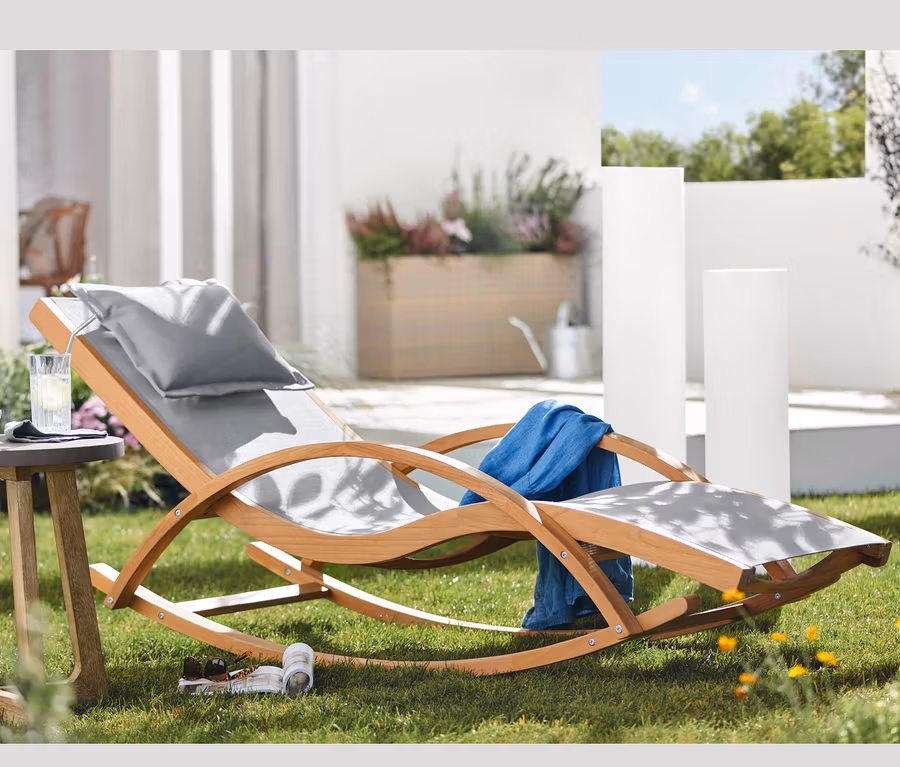 Teak-Schaukelliege mit Textilen