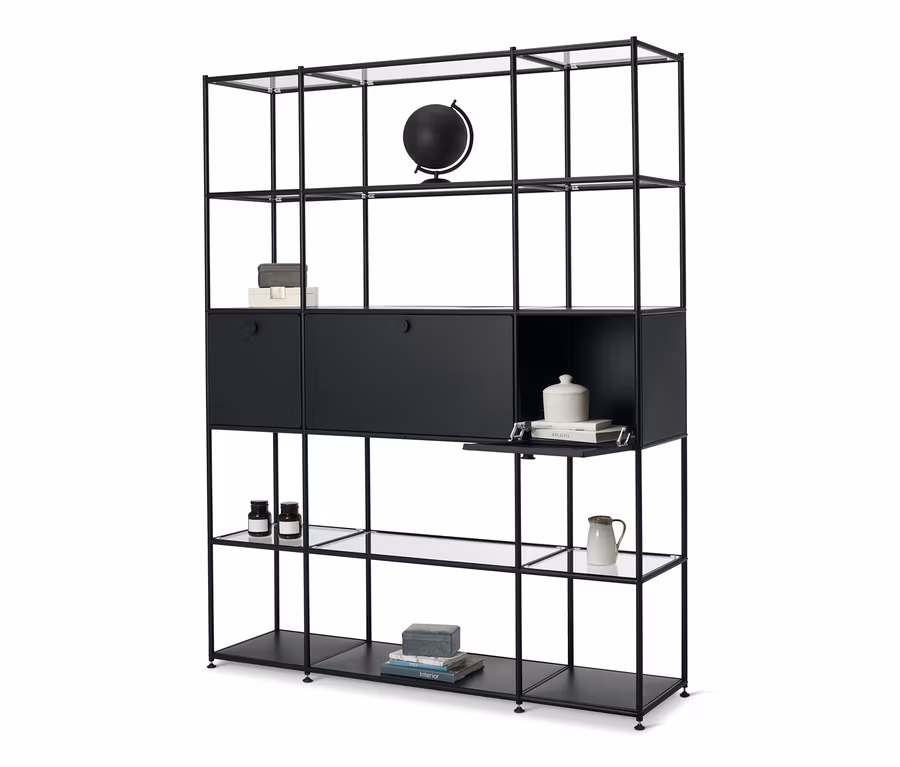 Hohes Glas-Metall-Regal »CN3«, 3er, mit versetzbaren Klappenfächern, schwarz