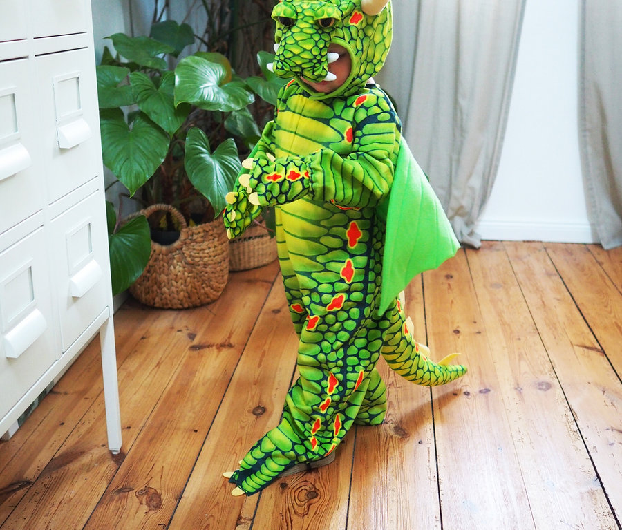 • Drachenkopf mit Öffnung fürs Gesicht, Handschuhe mit Krallen