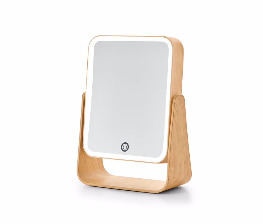 LED-Kosmetikspiegel in Holzoptik