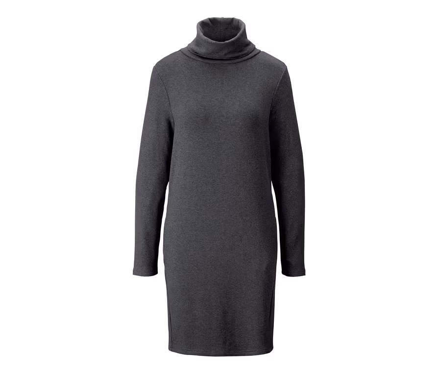 Kuschelig, stylisch und praktisch: Dieses Kleid kann alles. Durch eine weich angeraute Innenseite entsteht ein kuscheliges Tragegefühl, während der halsferne Rollkragen dem Stretchkleid einen modischen Kniff verleiht. Besonders hilfreich: die beiden Eingrifftaschen an den Kleidseiten.