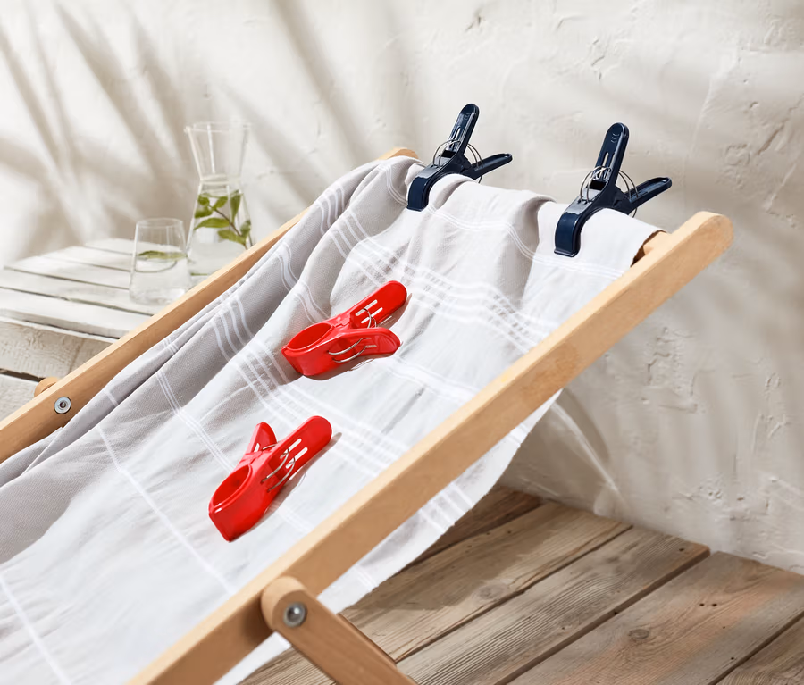 - Zum Befestigen von Badetüchern an Liegestühlen